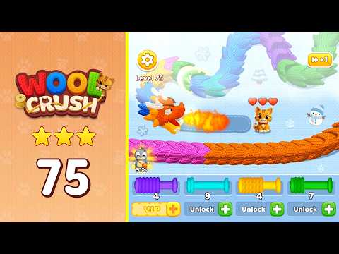 Wool Crush Level 75 opens with a diamond board. Your main job is to save the kitten in the top-left corner of the screen before the yarn dragon closes the route. The yarn dragon keeps the rescue path blocked until you open enough room to feed the right colors in order.